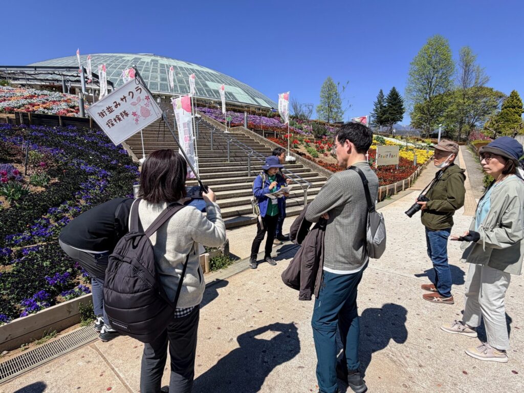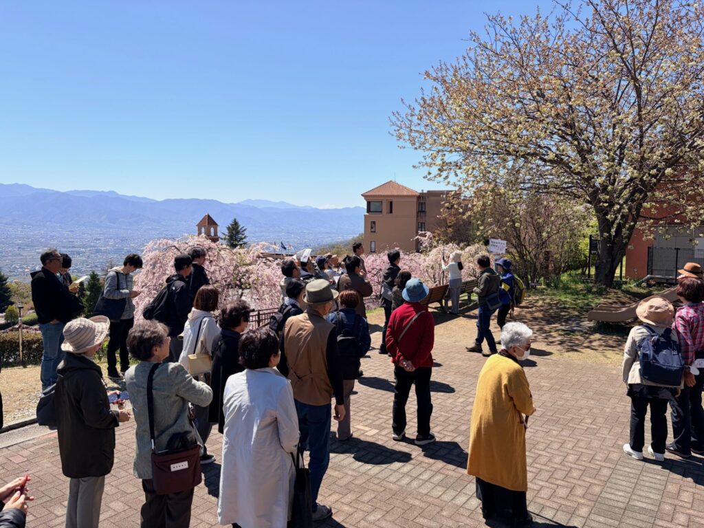 NPO法人みどり環境ネットワーク!さんと合同開催のさくら見学会に行ってきました。今回は山梨県の笛吹川フルーツ公園とぶどう寺大善寺へ。総勢40名の方々にご参加いただきました。みどり環境ネットワーク!の理事長でもあり、花や緑の各種団体の理事を兼任されている樹木医の和田理事長の貴重なお話を聞きながら、様々なサクラや果実の花々を観察してきました。